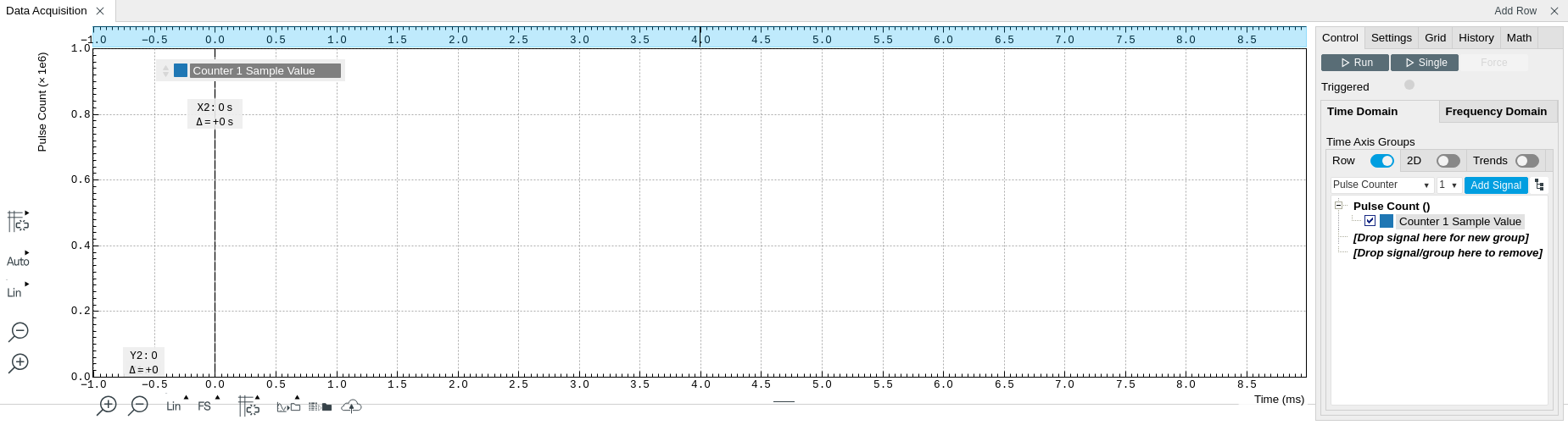 The Data Acquisition tool is one of the powerful time domain measurement tools as introduced in Unique Set of Analysis Tools and is available on all HDAWG instruments with the HDAWG-CNT option installed . This tab used to be named Software Trigger tab in previous versions of the LabOne software.