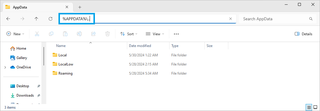 The C:\Users\[USER]\AppData folder is hidden by default under Windows. A quick way of accessing it is to enter %AppData%\.. in the address bar of the Windows File Explorer.